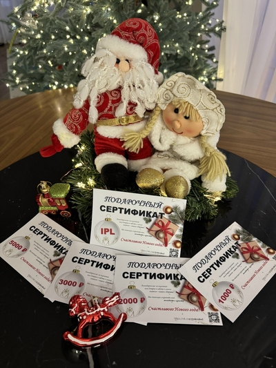 Мы предлагаем подарочные сертификаты на 1000₽, 2000₽, 3000₽, 5000₽ и на самую популярную процедуру - IPL -фотолечение.